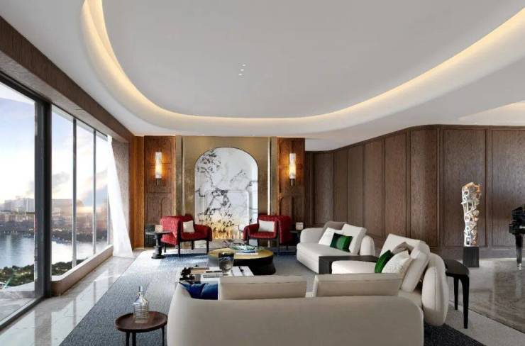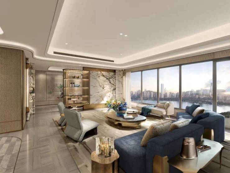 观江樾里聘请梁志天SLD打造出2套顶豪级别的江景大平层样板间-【梁志天生活时空】。主题分别为:鎏金旋律、电影摩登,均为三面单边270°观湖瞰江极致奢华装修,室内景观面达到惊人的90米,可谓登峰造极!