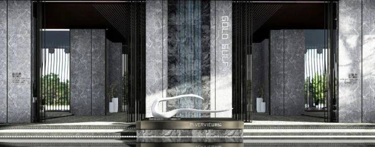 观江樾里入户大堂由国内著名的“金螳螂”建筑设计团队操刀打造;采用“玻璃盒子”设计理念,运用超白钢化玻璃,配合6米挑高空间尺度,达到通透式采光采景、引园入室的舒适效果;灰斑花纹石材及室内景墙的运用,层差感丰满,表达强烈的归家仪式感。