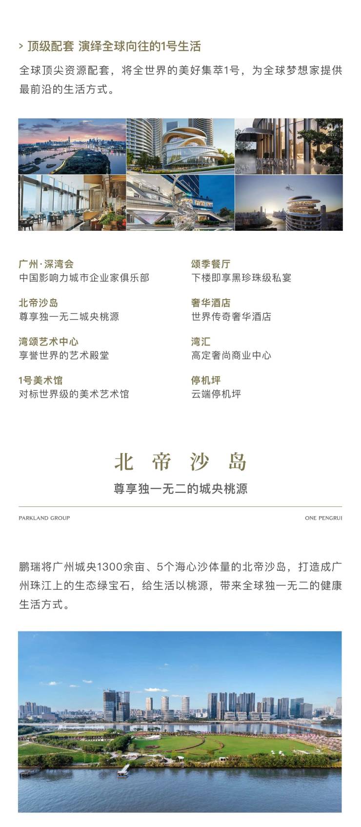 鹏瑞集团还取得了珠江江心岛北帝沙岛的经营权,这座与鹏瑞1号对望的岛屿将被打造成世界级的江心生态岛,为业主带来独特的体验。