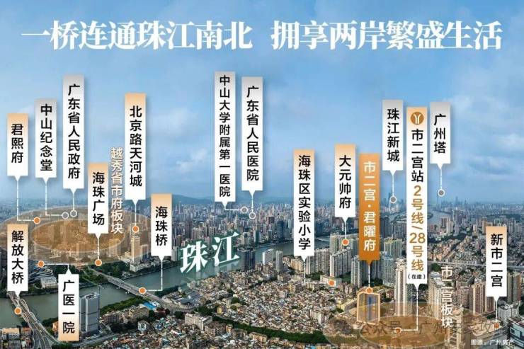 雄踞海珠文化经济发祥地市二宫板块,立海珠桥头,承越秀繁华烟火,启海珠未来蓝图;踞守广州第一中轴正脉与珠江前航道黄金交点,左手滨江岭南文化商圈,右手海珠文商旅融合圈,融广府千年文脉精粹,链当代城市发展动脉。