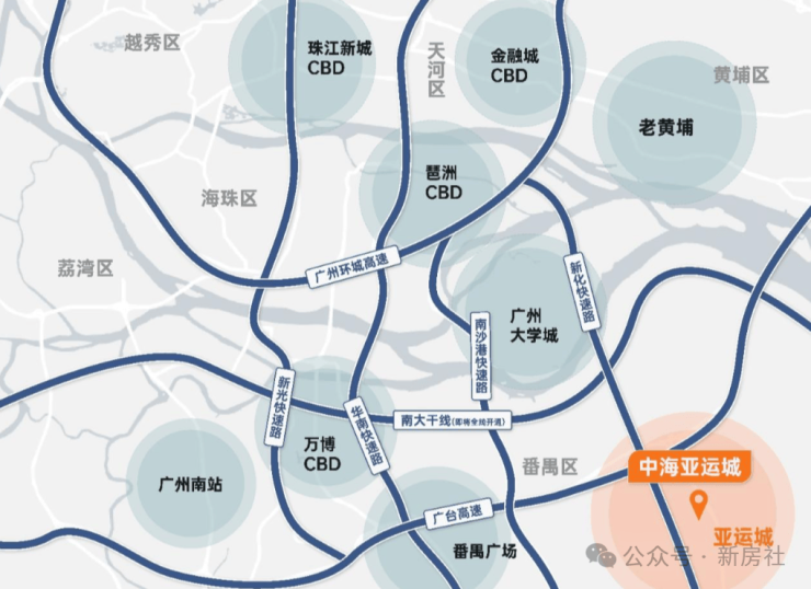 项目周边有三纵三横高速路网,京珠高速、南沙港快线,联动天河、海珠各区;规划南大干线形成佛山-番禺-南沙的快速通道;新华快速北段改线动工,未来亚运城瞬达琶洲电商总部。