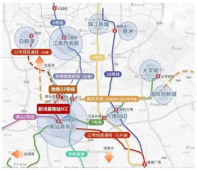 从位置来看,楼盘距离广州南站直线仅400米,步行即可衔接包含4条高铁、4条城际、4条地铁在内的12条轨道交通,即将通车的广州东环城际能实现3站到琶洲、4站到金融城,东晓南路连接线通车后,15分钟就能直达海珠中心城区,不管是市内通勤还是大湾区跨城出行都很便捷 。