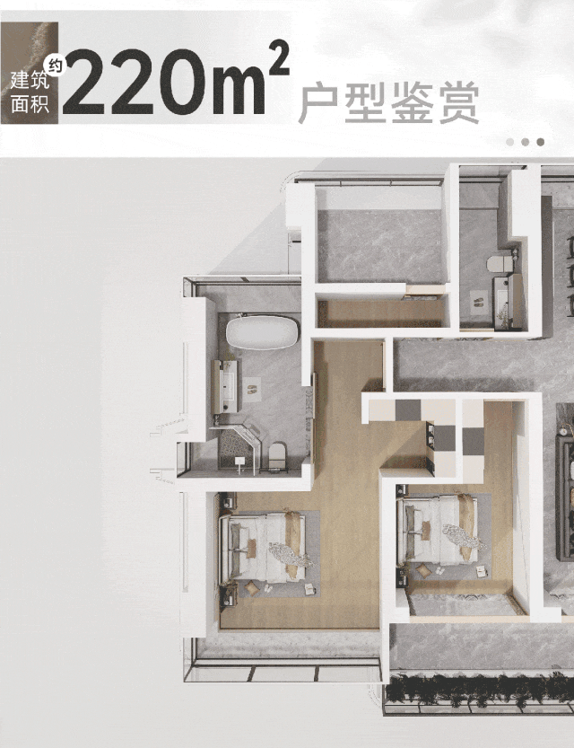 全栋只做了一个户型——建面约220平,圈层感更为纯粹!