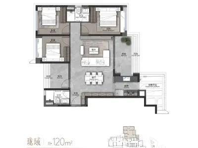 主力户型 1|120㎡ 3 房 2 厅 2 卫(入门奢宅,南向湿地)
