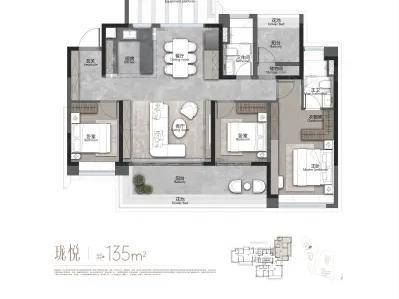 主力户型 3|195㎡ 4 房 2 厅 3 卫(楼王,270° 湿地 + 城市双景)