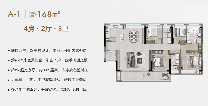【产品类型】:建面约97-168㎡精工三至四房