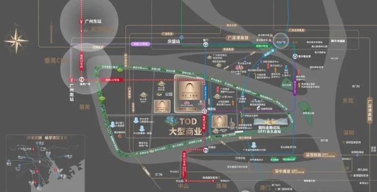 这边除了有地铁18号线,22号线,还有规划中的15号线,中山医科大学,国际金融论坛永久会址。