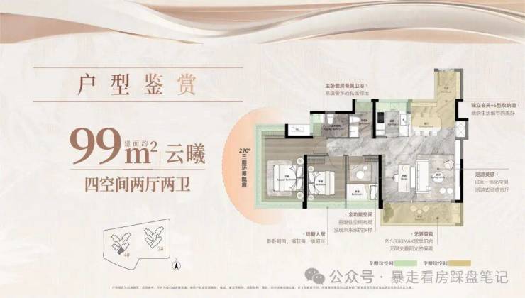 √八开间朝南的王者格局 √约9米寰幕阳台 √270°环幕全景舱双套房