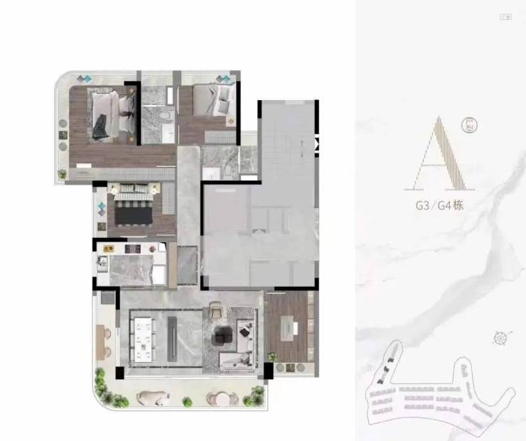 整个项目有叠院,也有小高层、低层洋房,面积相当讨巧,都是建面约143㎡。既巧妙避开了144平豪宅税,又满足了大家对于奢宅的期待,尺度感十足。