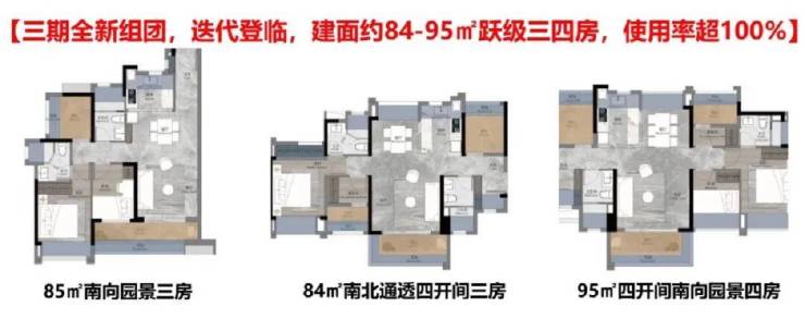 目前,云湖三期主推建面约84-118㎡三四房户型,首推房源为C7栋的84㎡、85㎡、95㎡三个户型。