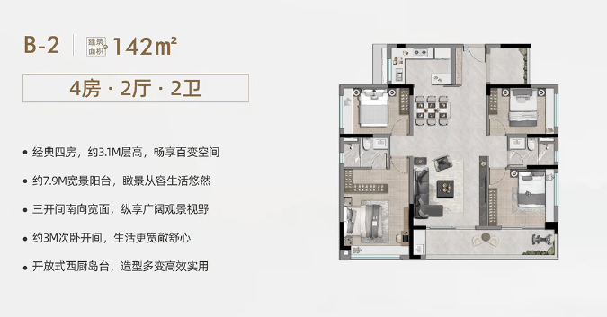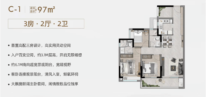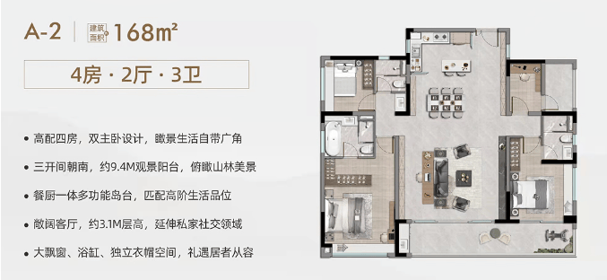 【产品类型】:建面约97-168㎡精工三至四房