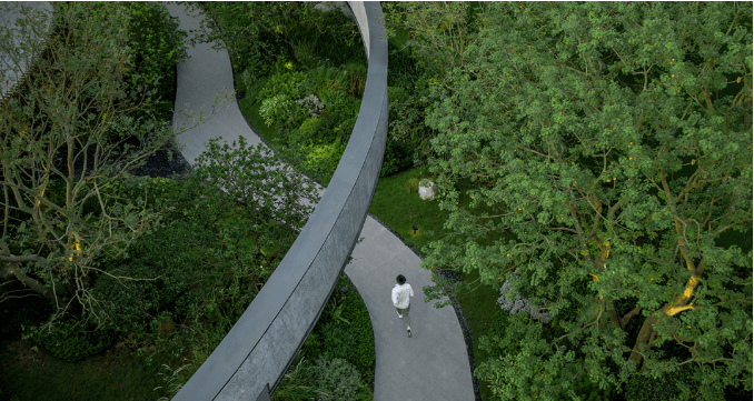 其次,依托地势整体抬高约9米,使楼盘拥有更大的园林空间的同时,进一步接近山景,把景观视野拉满,大有俯瞰天下的姿态,还能沿着绿道慢跑刷步数,或漫步遛娃遛狗,十分惬意。尤其是在疫情波动、常态化的当下,人们更希望拥有一种更健康的生活方式,临山而居,让因“快节奏”而被折叠的空间,能得以舒展。