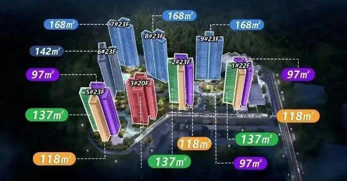 以光为生活的设计理念,大面宽呼应阳光和绿化,透过全屋飘窗、阳台将采光面扩大到极致,增流空气循环,将更多自然光线引入室内,更可以多角度欣赏公园式住区的优美风光。目前在售2栋,俩梯四户23层高,面积含盖97-118-137的3~4方,至于97方总价215万任选