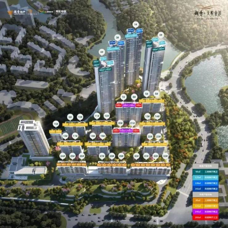 项目总共规划34栋,超高层面积95-141㎡,小高层面积95-160㎡,小高层大部分栋座已经售罄、交楼,目前在售的是13栋和14栋的尾货,剩下还有5栋和6栋还没推出。超高层的目前1栋、2栋、4栋在售,货量充足,3栋还没推出。近期最新加推7栋和8栋的楼王,138㎡和160㎡四房户型。