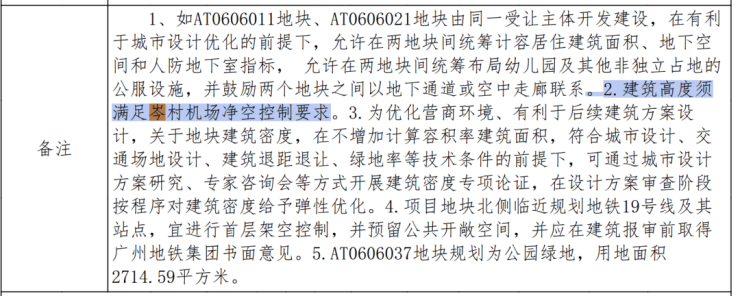 在建筑高度上,公告明确指出,地块必须满足岑村机场净空控制要求。