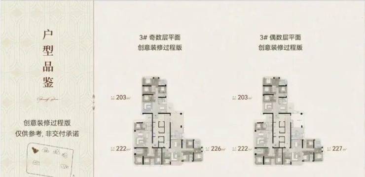 226/227㎡户型特点: 4T3户,均有独立电梯及门厅互不扰; ·8*8.4m大方厅,宽敞大气; ·超款客厅落地景观面,客厅、阳台、众数套房可望 江望琶洲总部及广州塔,景观优势(无主阳台); ·有独立工人房但无赠送平台; ·主卧270°景观转角飘窗,800mm飘窗可打;