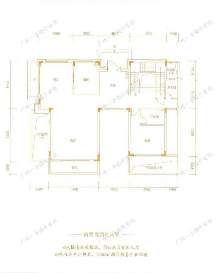 ① 7500 斱中心天然湖,四水归堂,藏风聚气,寓意居者拥揽钱库,真正聚水为财。