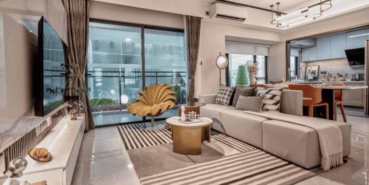 项目主打 85-103㎡精装三至四房,以 "同等面积多一房" 的高实用率赢得市场青睐,全南向布局搭配超 5 米长阳台,让每一户都能享受充足采光与开阔视野。
