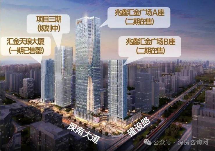 项目立足于深圳罗湖区核心位置,占据深南大道400米封面,是罗湖城市更新首发之作。整体分为三期开发,总占地约22,000㎡,总建面约280,000㎡,汇集住宅、公寓、办公、商业等多种业态于一体稀缺的城市中心垂直综合体项目(其中商业:约47,000㎡,办公:约120,000㎡,公寓:约52,500㎡,住宅:约21,000㎡)。一期为汇金天琅大厦(现已入伙),二期为兆鑫汇金广场(现楼在售中),三期规划中。