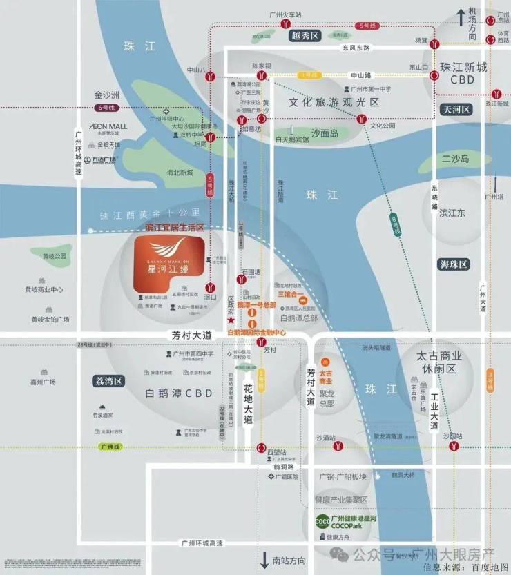 项目约750m即达5号线地铁滘口站,30分钟直达珠江新城,白鹅潭未来有超10条地铁线路穿过,覆盖大湾区1小时交通生活圈