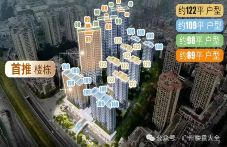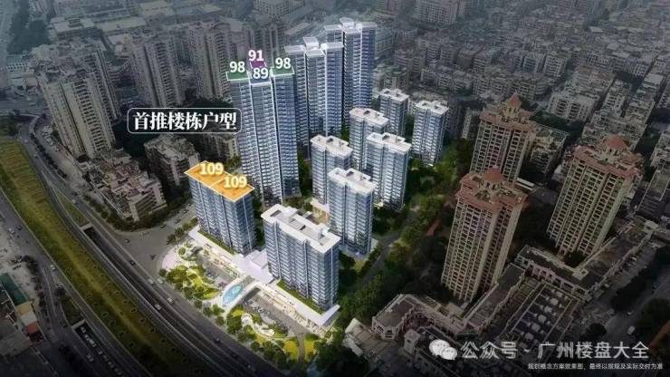 1、塔楼主力建面约89-98㎡三至四房,全南向设计,偏向功能型刚需。