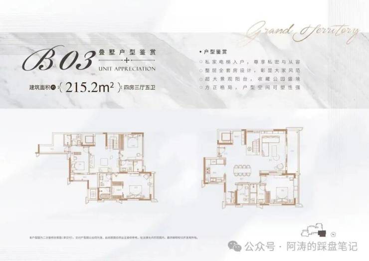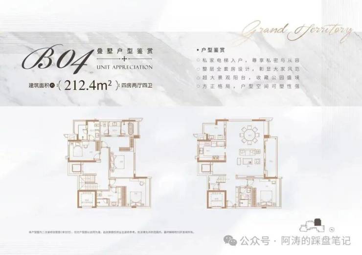 叠墅产品仅12席,户型面积169-215㎡,设计为“有天有地有花园”,私家电梯入户、全屋套房布局、6米宽景观阳台等配置,满足改善型购房者对品质生活的追求。