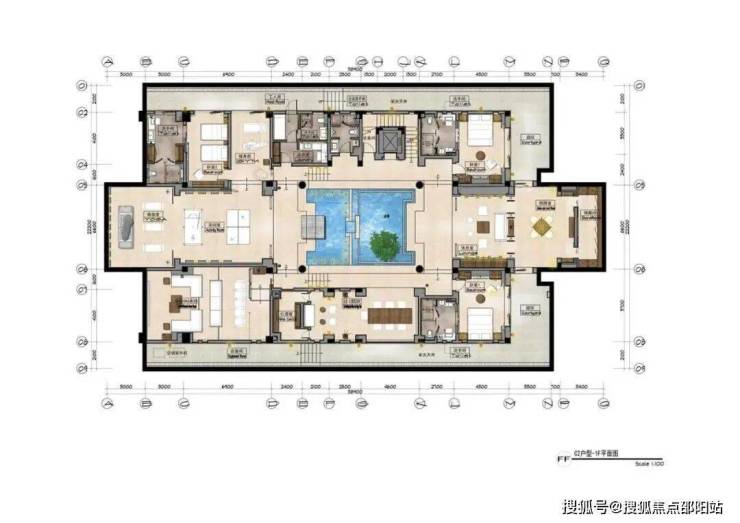 庭院西部双卧室对称而立,配套卫生间与室外淋浴间,尽赏超大泳池景观,起居室与餐厅、家庭室浑然一体,共赏中心庭院水木清华,四季芳菲愉悦身心。设保姆间、洗衣间、卫生间与中式厨房,主仆区域分明,大家风范可见一斑。