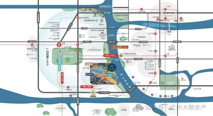 项目目前现有地铁是1号线西塱站距离项目大约3.5公里,周边还有10、11、22号线(在建中)三地铁交汇,其中距离10号线东沙站仅约600米(预计2025年底开通),串联天河白云越秀荔湾和海珠区,连接广州火车站、广州东站等大型交通枢纽,便捷出行;