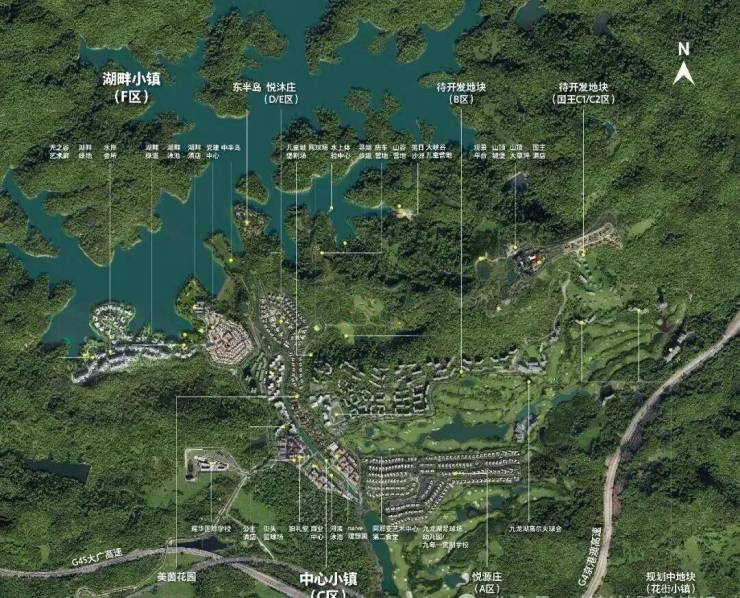 项目重点建设中心小镇C区、艺术聚落F区、伴山美地B区三大园区,并串联现状山地游乐、国王酒店、欧洲小镇与集散中心。