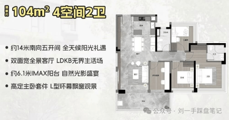 104㎡四房两卫,约6.1米超大阳台,双面宽全景