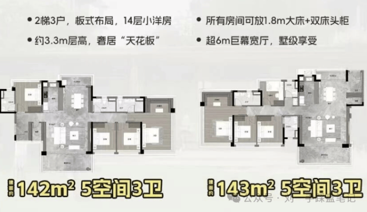 143㎡五房三卫,板式布局,3.3米层高,墅级享受