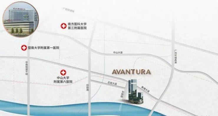 项目周边拥有南方医科大学第三附属医院,中山大学附属第六医院,暨南大学附属第一医院,黄埔区中医院……等多家医院为业主健康保驾护航。