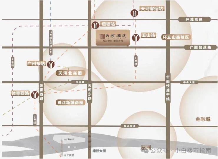 商业:距离珠江新城约4.5KM,太古汇等天河核心商圈约3KM