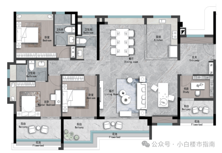 4号楼和3号楼是去年的户型,使用率低一些也比较靠近路边