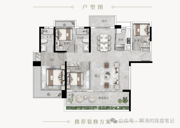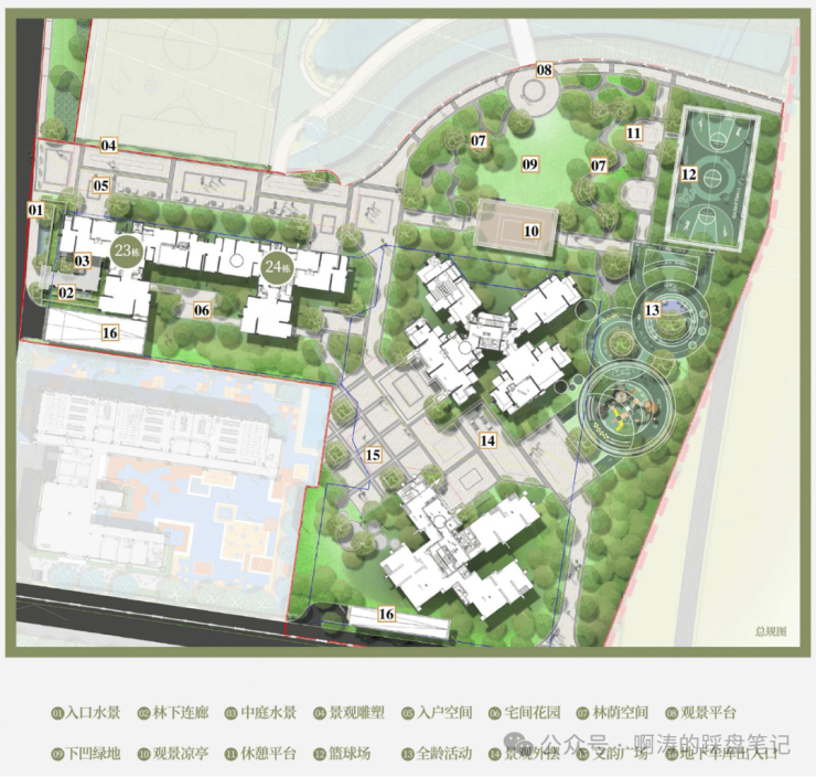 •休闲娱乐:【观璟】以四季植物主题打造【四大专属花园】,满足家庭多元需求;楼下架空层打造全龄段休闲活动空间,为不同客群定制化生活方式。