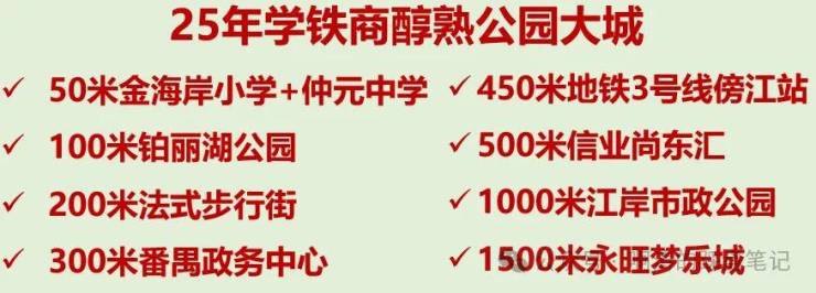② 千亩生态成熟品质大城:25年成熟运营,法式风情步行街、仲元中学、金海岸实验小学、傍江地铁等配套已全部兑现
