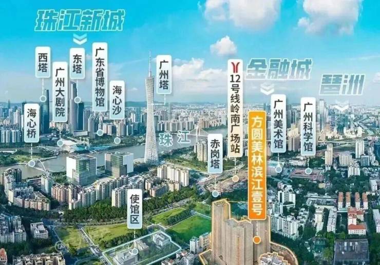 方圆美林•滨江壹号位于广州海珠区赤岗板块,处于一江两岸核心经济发展区域,距珠江新城、琶洲仅2公里,距广州塔仅约700米,是广州塔-琶洲CBD连片开发的重要组成部分。