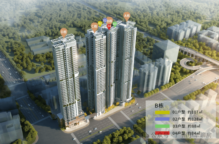 B栋产品:约84-128㎡三房至四房,三梯四户