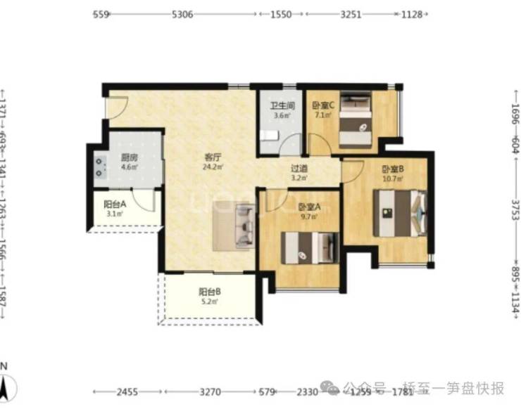 134㎡四房:适合改善家庭,四开间朝南,南北通透,主卧做了主套设计,空间宽敞。