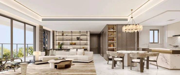 项目以典范标准打造,采用高定品牌装修,配全屋中央空调、洗碗机、净水器、智能马桶等精装系统,匠造板块标杆人居。