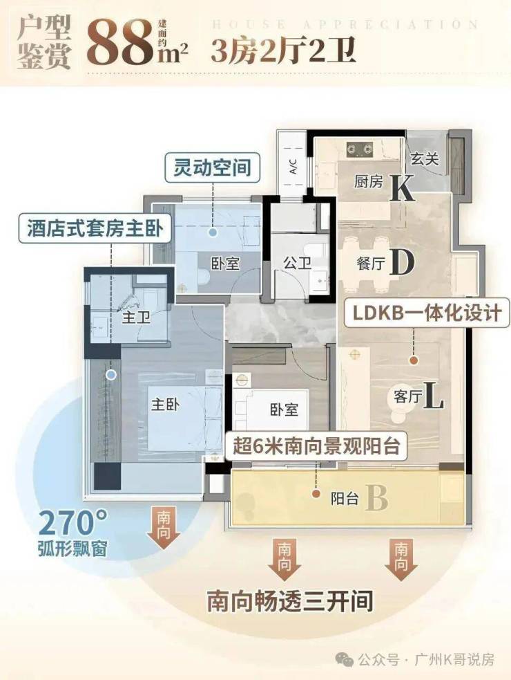 阳台、飘窗、花池赠送,户型使用率超100%;
