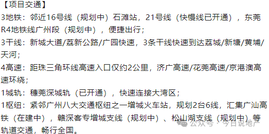 医疗配套三甲医院,周边分布6大医疗机构,医疗配套完善,其中三甲医院——广州前海人寿医院已投入运营使用,距离项目约5分钟车程。