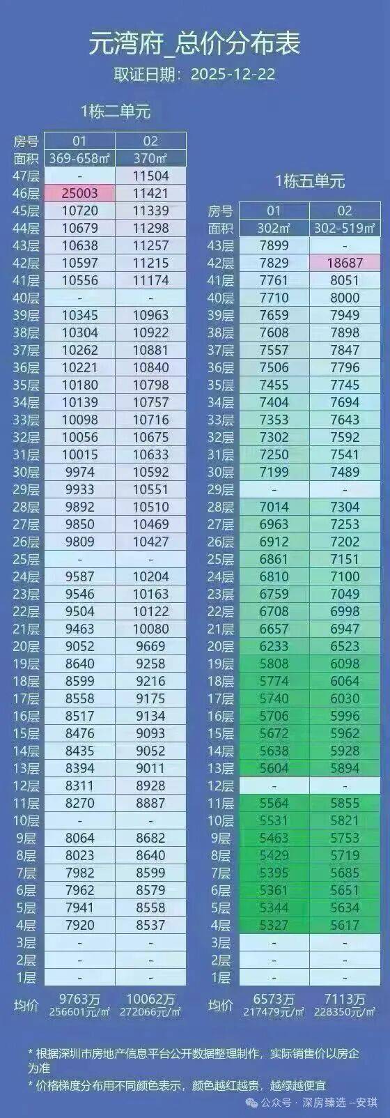 上批302-370㎡,89折后总价表/单价表
