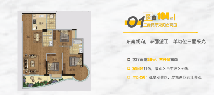 🅣🅞🅟01户型【104㎡3房2卫】东南双面瞰江