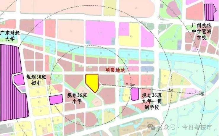 3、国际校圈:500米左右范围处规划一所36班小学、一所36班九年一贯制学校+国际私立+广东财经大学