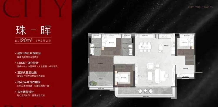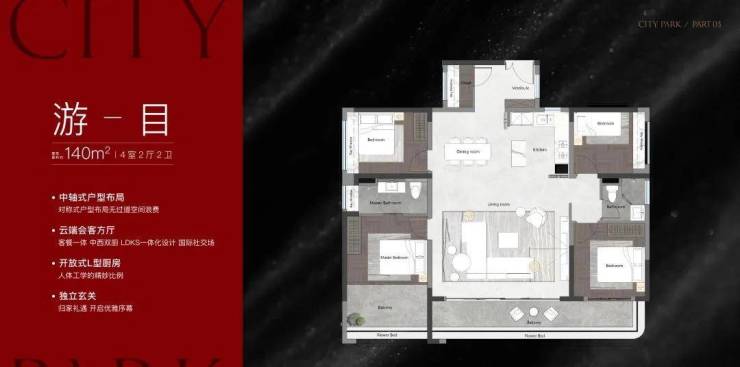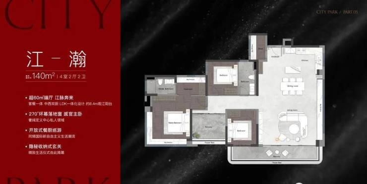 户型面积:建面约120-143㎡四房