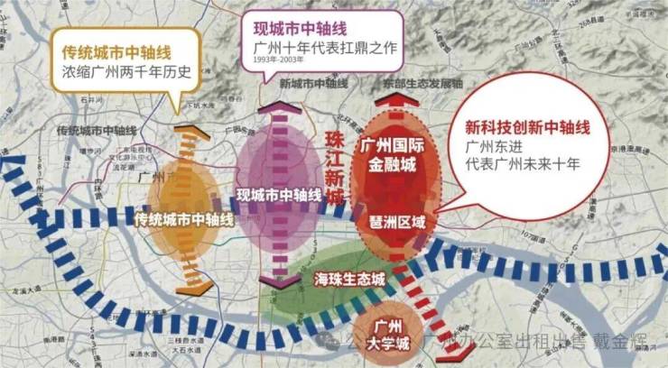 2013年后天河CBD核心东移,广州第三中轴线诞生。由国际金融城、广州科学城、广州大学城、琶洲电商总部串联成一条新的“城市纵贯线”承接东进、南拓的使命,代表了广州未来十年城市雄力。