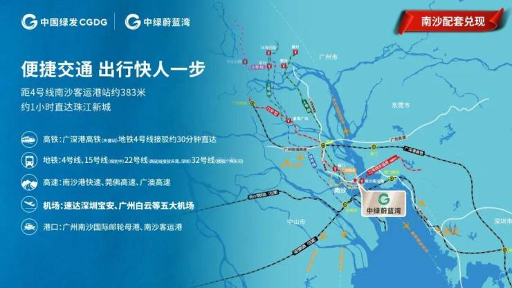 2港口:南沙客运港(35分钟直通深圳,1小时直达香港)、南沙邮轮母港(已开通香港、日本、菲律宾等9条航线,通达世界各国)