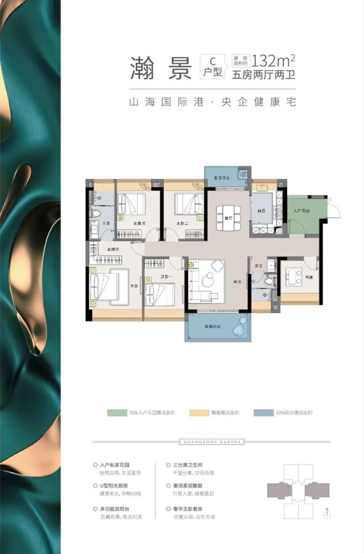 约132m²南沙湾唯一在售五房户型