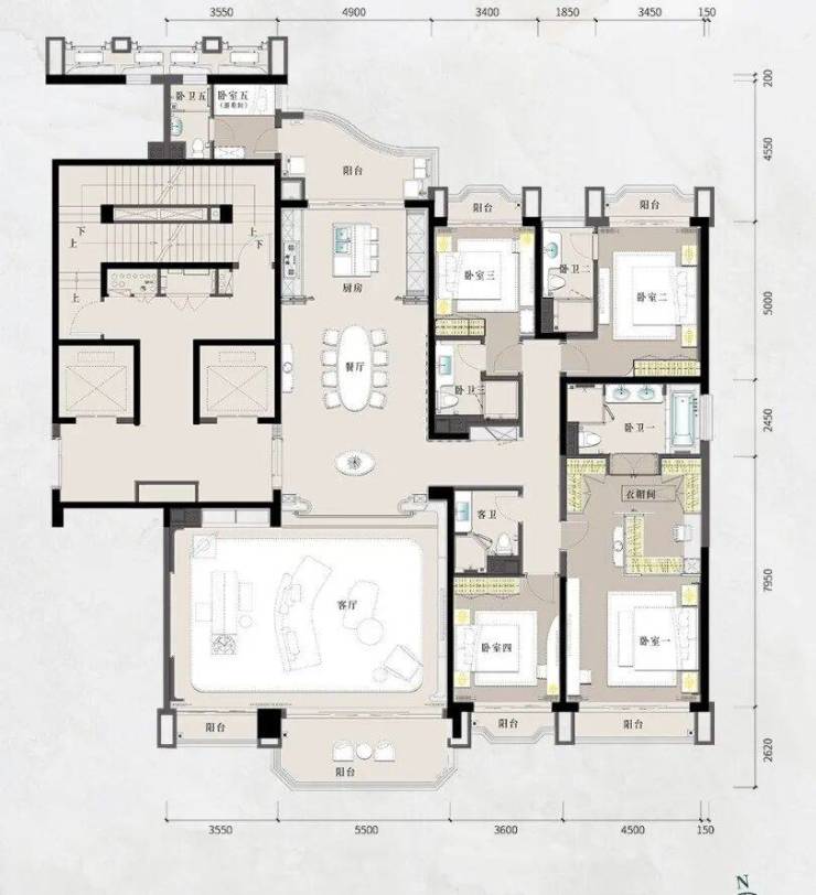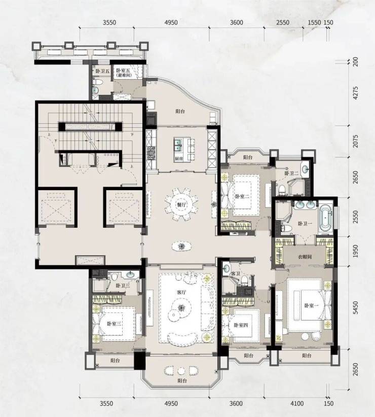 🌟 个性定制灵活双厅打通拥有约9米宽的江景,双客厅面积可达约50㎡;